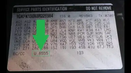 Lakk koden til GMC finnes i bagasjerommet. Under ser du en illustrasjon av hvordan lakk koden til GMC ser ut.