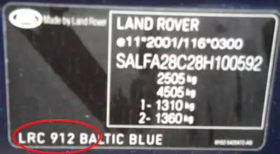 Lakk koden til Land Rover finnes på en chassisplate i motorrommet eller en etikett i dørstolpen på førersiden, koden er 3-siffret. Under ser du en illustrasjon av hvordan lakk koden til Land Rover ser ut.