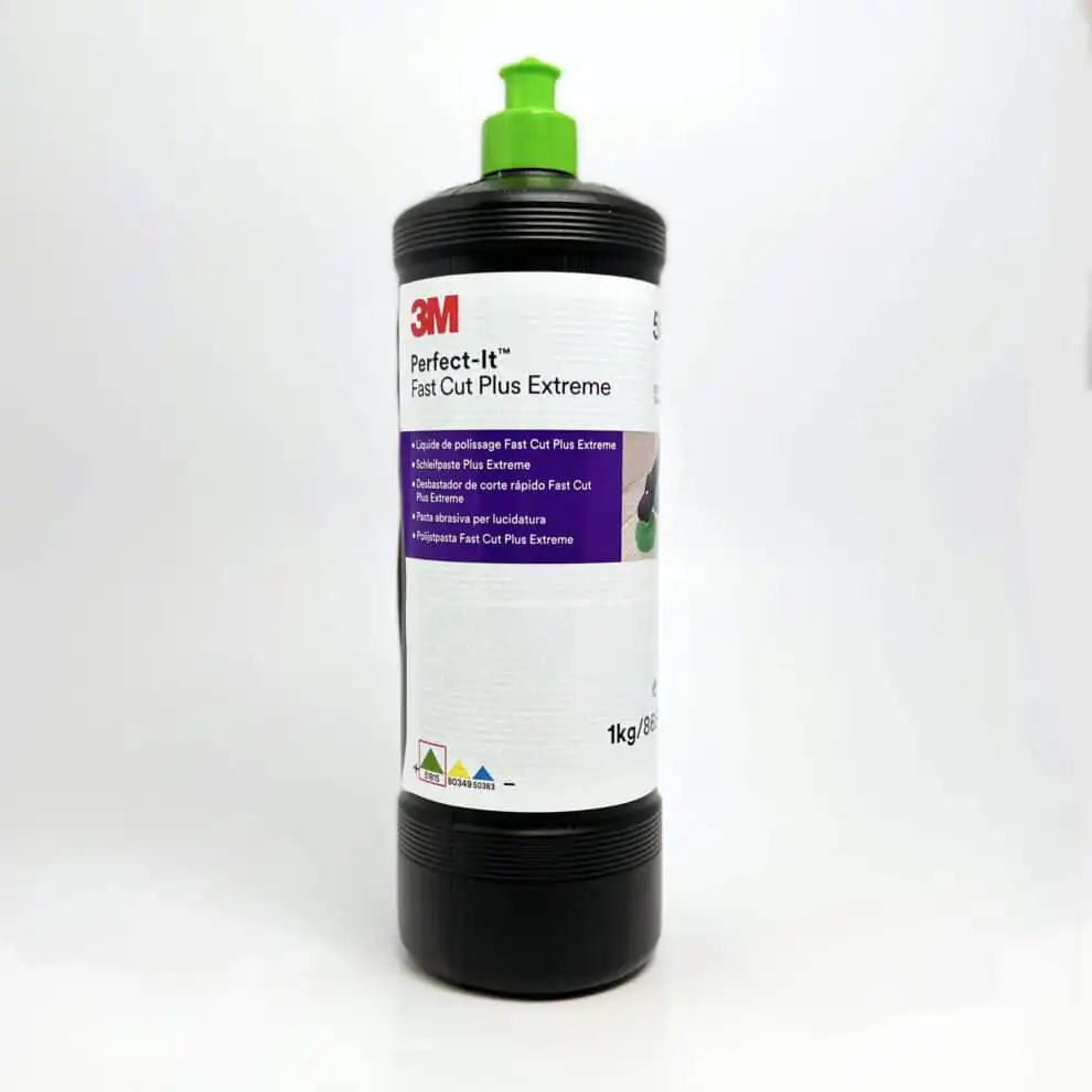 3M 51815 Perfect It Fast Cut PlusExtreme er et hurtigskjærende flytende slipemiddel for rask fjerning av sliperiper etter slipe- og avnibbingsprosesser med 3M 260L P1500 og deretter Trizact 3000 og oppnå en høyglanseffekt på både ny og eldre billakk. Brukes med roterende eller eksenterpoleringsmaskin med grønn pad fra 3M sitt fargekodede system. 3M Perfect-It™ Fast Cut Plus Extreme er en del av den nyeste generasjonen med prisbelønnede, fargekodede produkter, laget for alle typer restaurering av lakkdefekter, som oksidering, overflateriper, riper fra bilvask, osv. Gir en overlegen glansfinish.