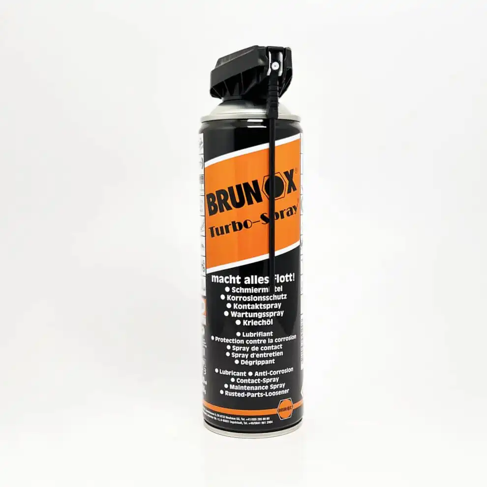 Brunox Turbo- Spray er en komplett pleie. Takket være en balansert blanding av hydrokarboner og til settning stoffet TURBOLIN. Brunox turbo-spray danner en 2 mikrometer tykk, gjennomsiktig ikke herdende smøre film og som fortrenger fuktighet.