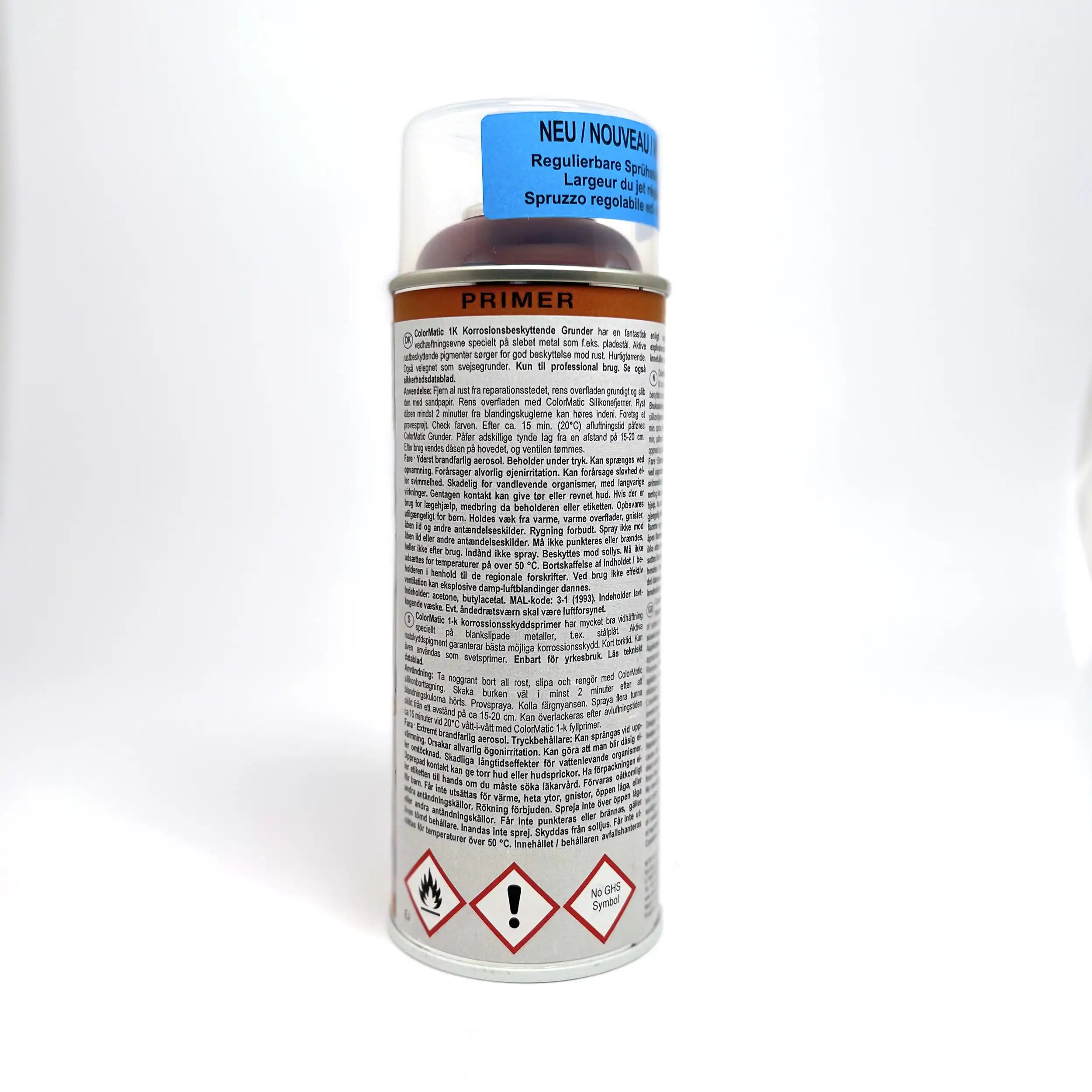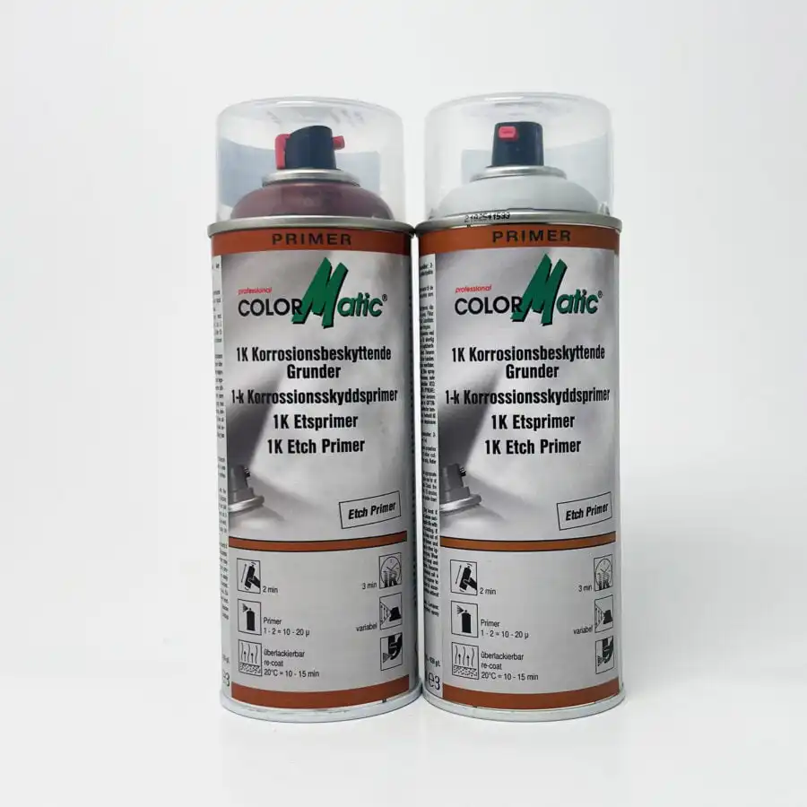 Primer ColorMatic 1K har utmerkede klebeegenskaper, spesielt på polert metall, f.eks stålplate. Aktive rustbeskyttelsespigmenter sørger for optimal korrosjonsbeskyttelse. Rask tørking, kan også brukes som sveisegrunning. For best mulig forberedelse av metallunderlag, bruk silicon remover før grunning. Ideell for spot-og delmaling.