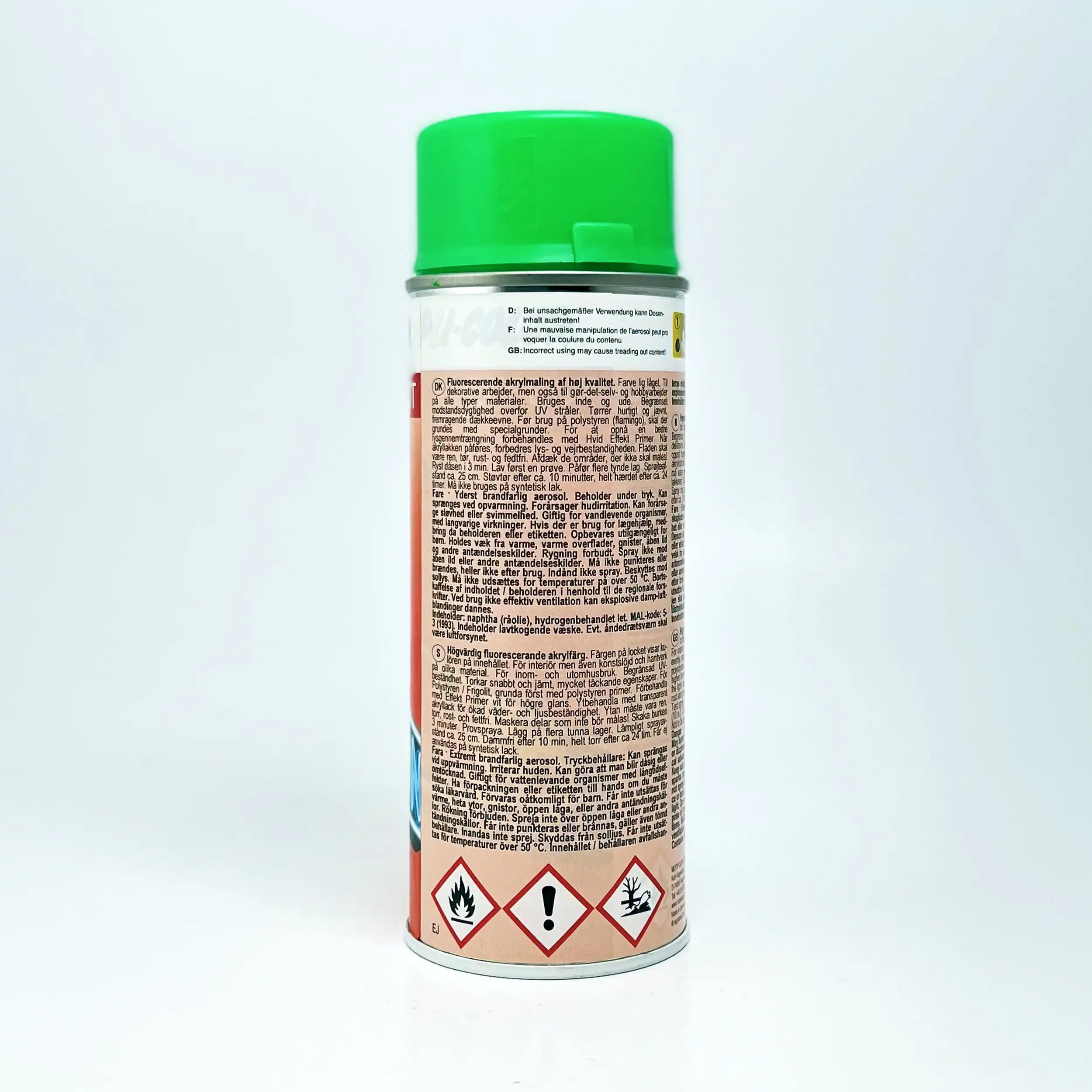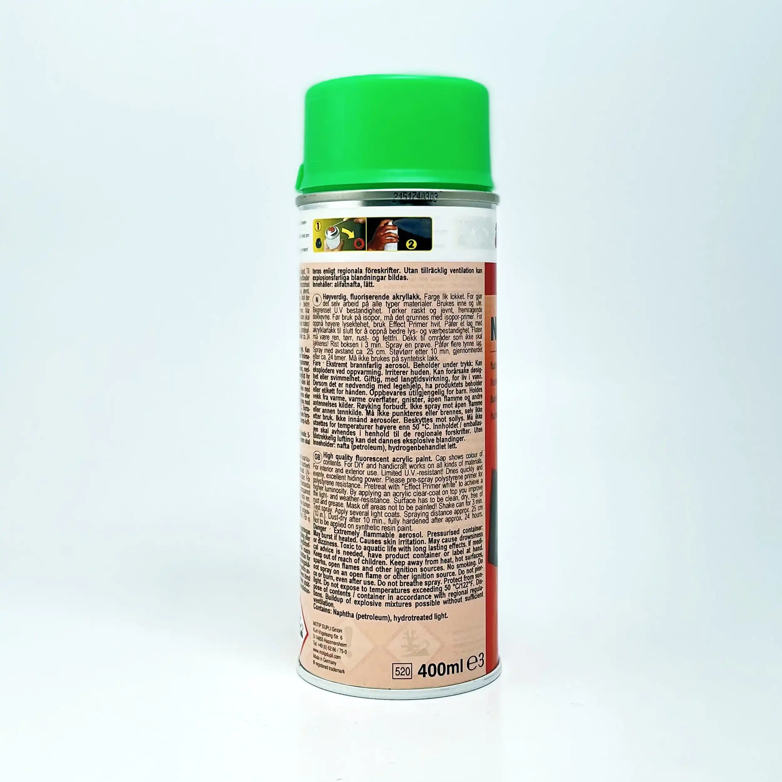 Dupli-Color akrylbasert kvalitetslakk som egner seg på kjøretøy, hobbyprosjekter og dekor. Husk å bruke riktig grunning for underlaget og klarlakk på toppen dersom fargen krever det. Fluorescerende farger for profesjonelle dekorasjoner: utstillingsvindudesign, standkonstruksjon, butikkinnredning, utendørsdekorasjoner, demo-utstillinger etc.