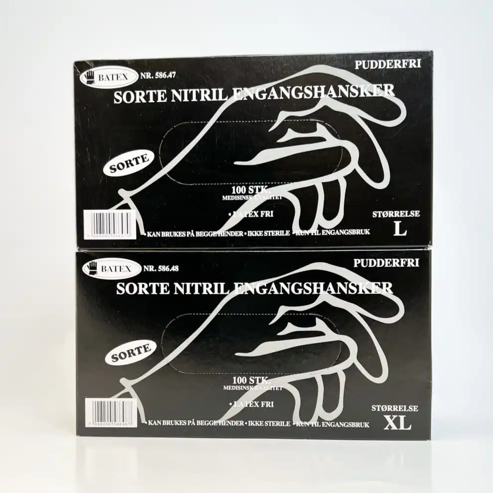 - Sorte pudderfri nitril engangshansker