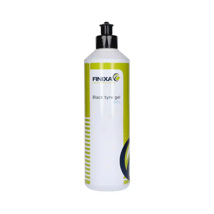 Finixa Dekk Shine Sort dekkgelé gjør dekkene dype svarte og lar dem skinne veldig lenge. Kan også brukes til å pusse opp ikke lakkerte plastdeler.