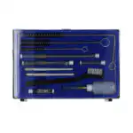 - 6 rensenåler med holder for rengjøring av dyse og kappe, samt en flaske for smøring av bevegelige deler.