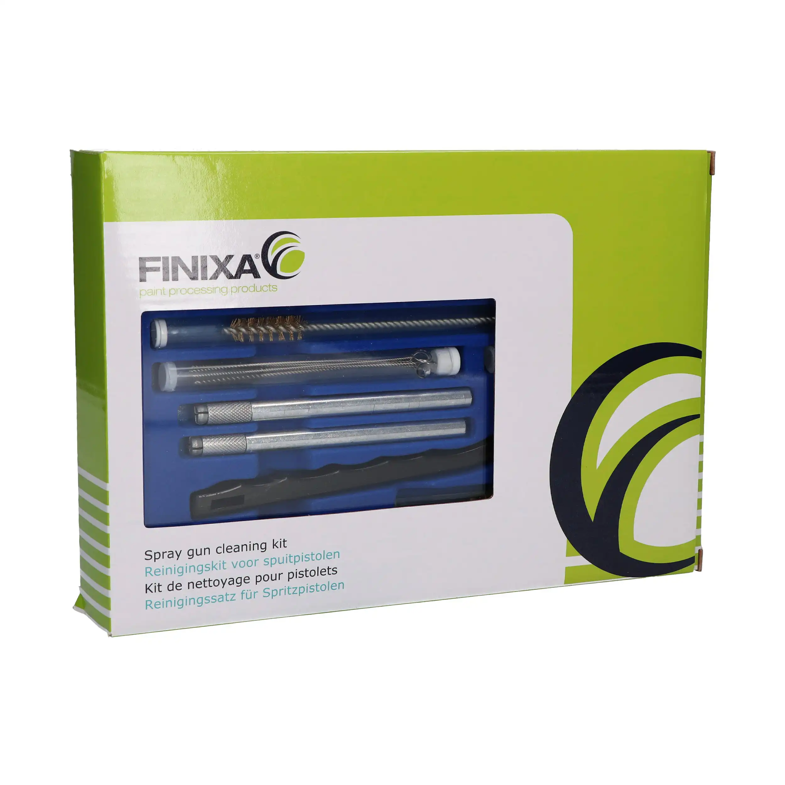 Finixa rensesett til sprøytepistol inneholder det meste du trenger for å rengjøre lakksprøyter innvendig og utvendig.