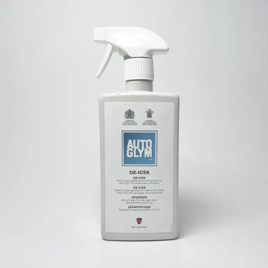 Autoglym De-Icer 500ml er et svært konsentrert og høyt rangert produkt laget for raskt fjerne rim, is og snø fra bilen. Rask Handling: Den inneholder en konsentrert blanding av kjemikalier, ofte basert på alkoholer (som etanol eller glykoler), som har et mye lavere frysepunkt enn vann.