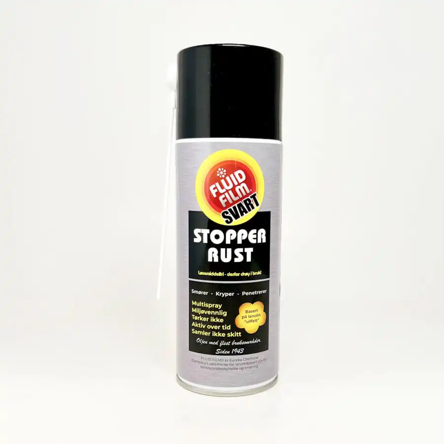 - Finnes i klar og svart, Fluid Film Spray Svart har samme egenskaper som Fluid Film Spray. Bare fargen er forskjellig.
