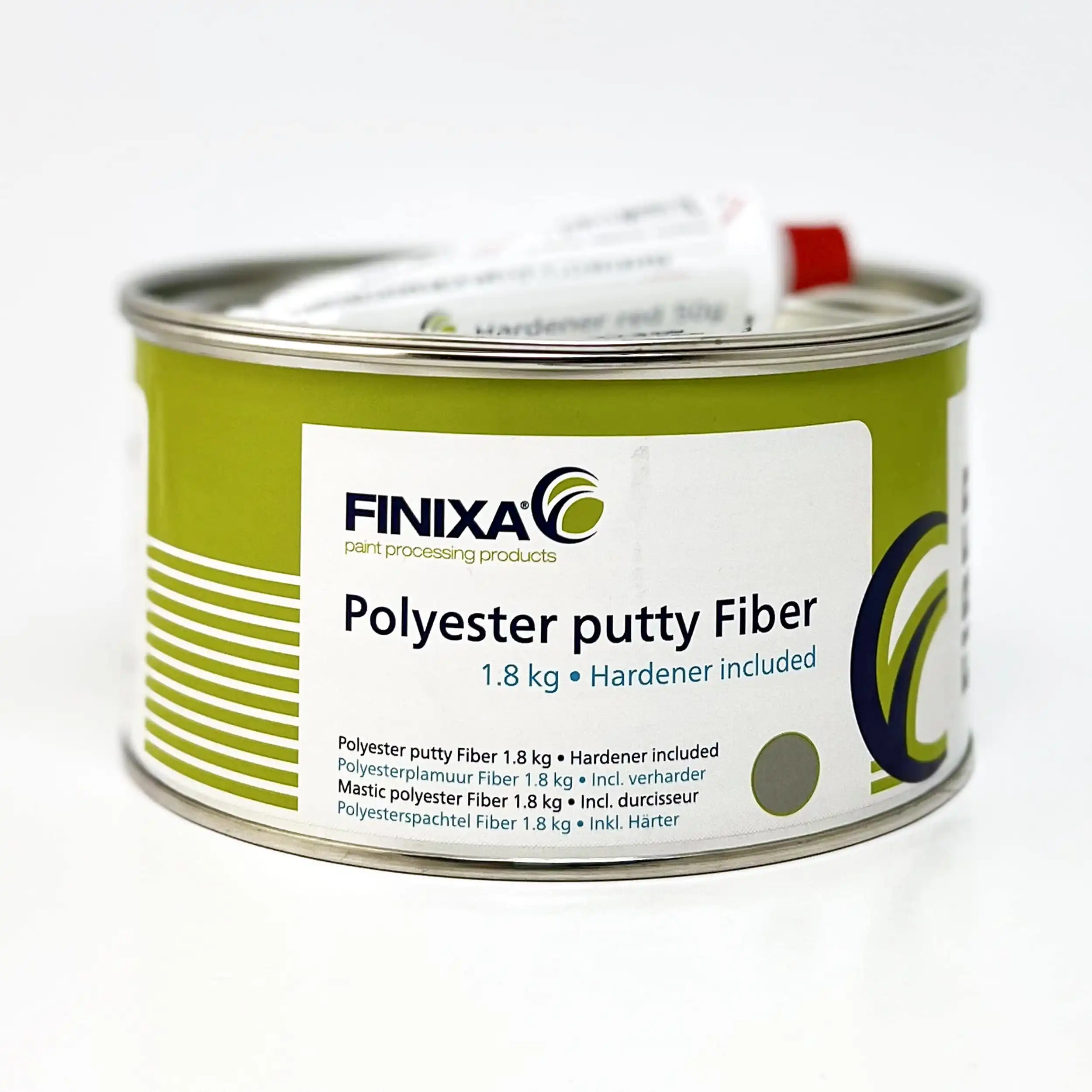Finixa Sparkel glassfiber 1,8kg + herder en universal polyester sparkel med glassfibre. Er til for å fylle opp større overflater og større uregelmessigheter.