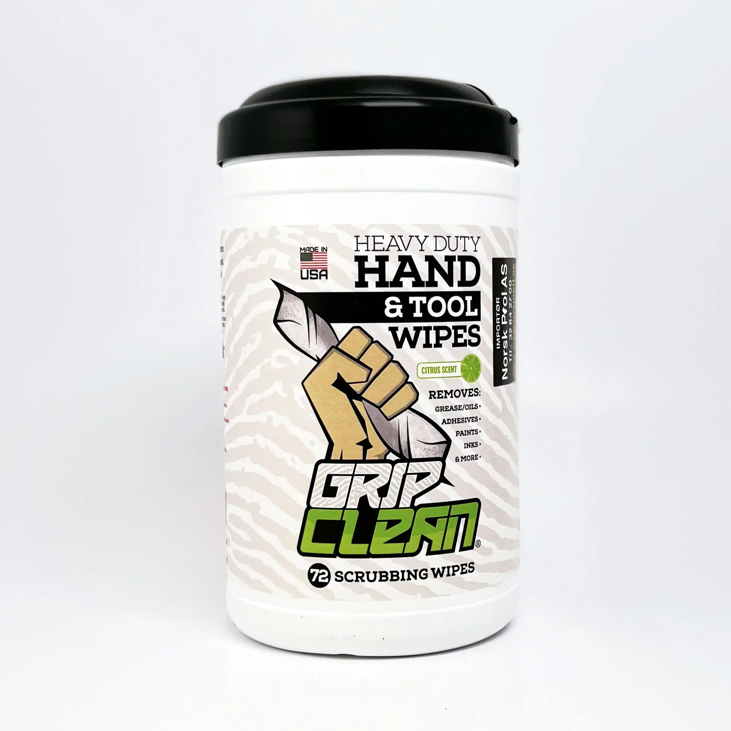Grip Clean Wipes, 72stk eller 30stk engangs servietter, super ha med når en er på farten. Har en lukt av sitrus og tekstur skrubbe- og en bløt side. Disse serviettene kan du brukte til å rense og vaske dine verktøy.