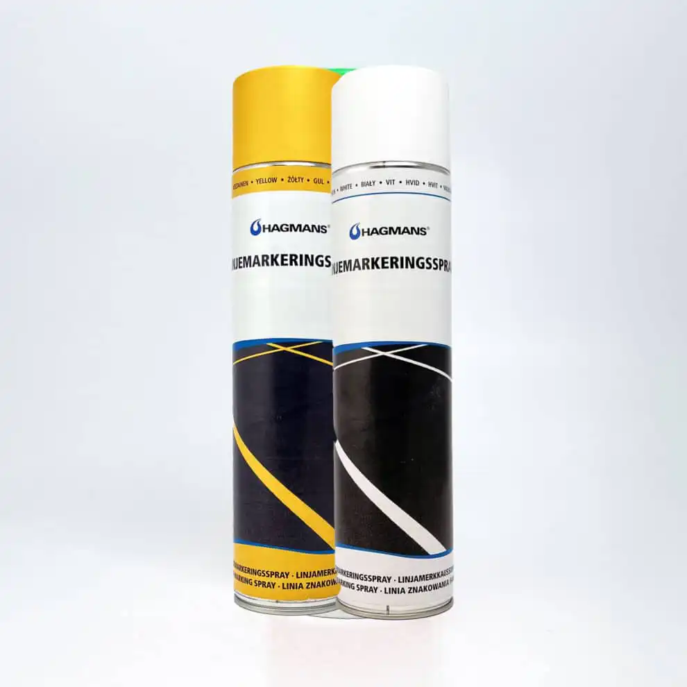 Hagmans linjemarkeringsspray 600ml, er lett anvendelig maling til avmerking av parkeringsplasser, ganger, avsperringer osv. Gir en tydelig og vedvarende avmerking.