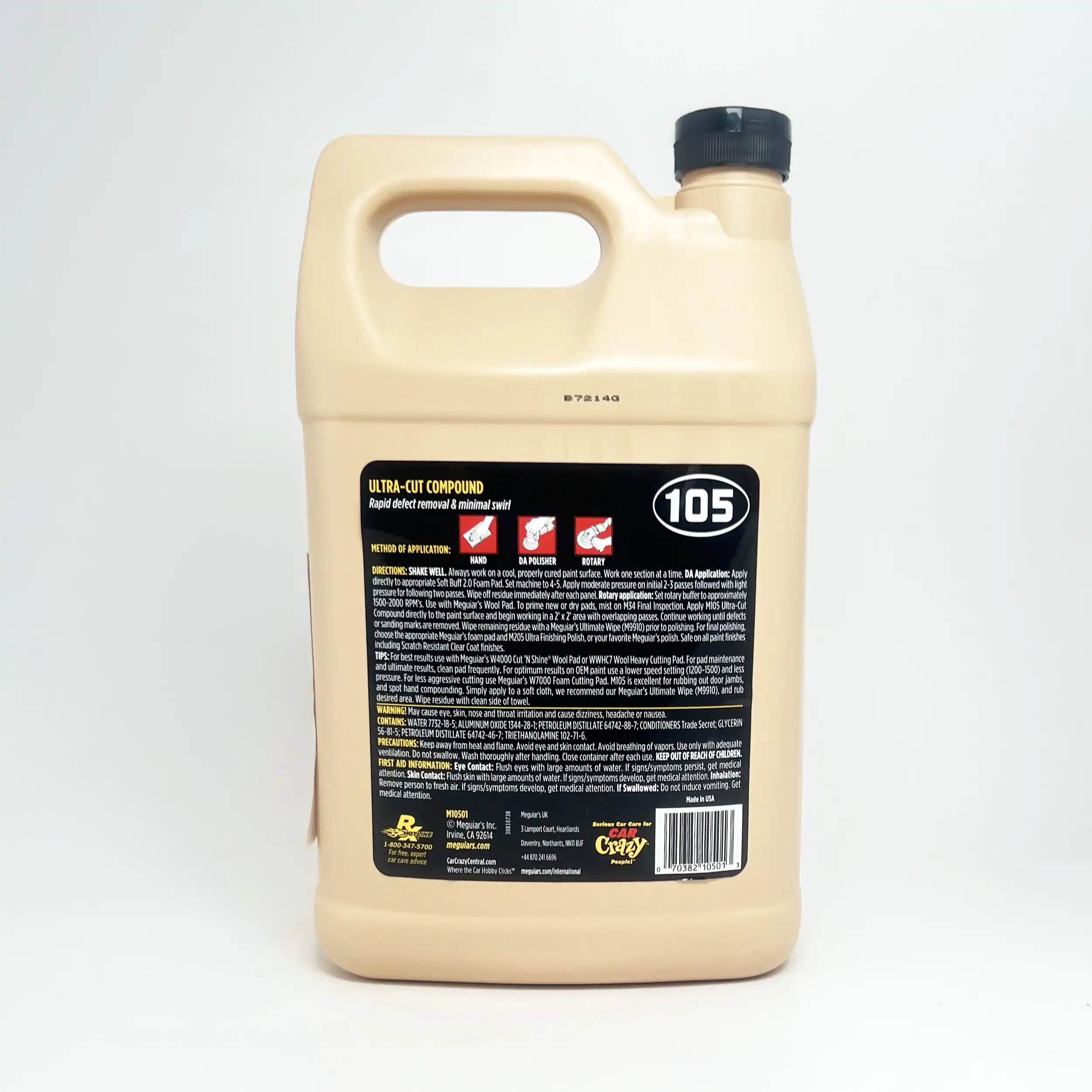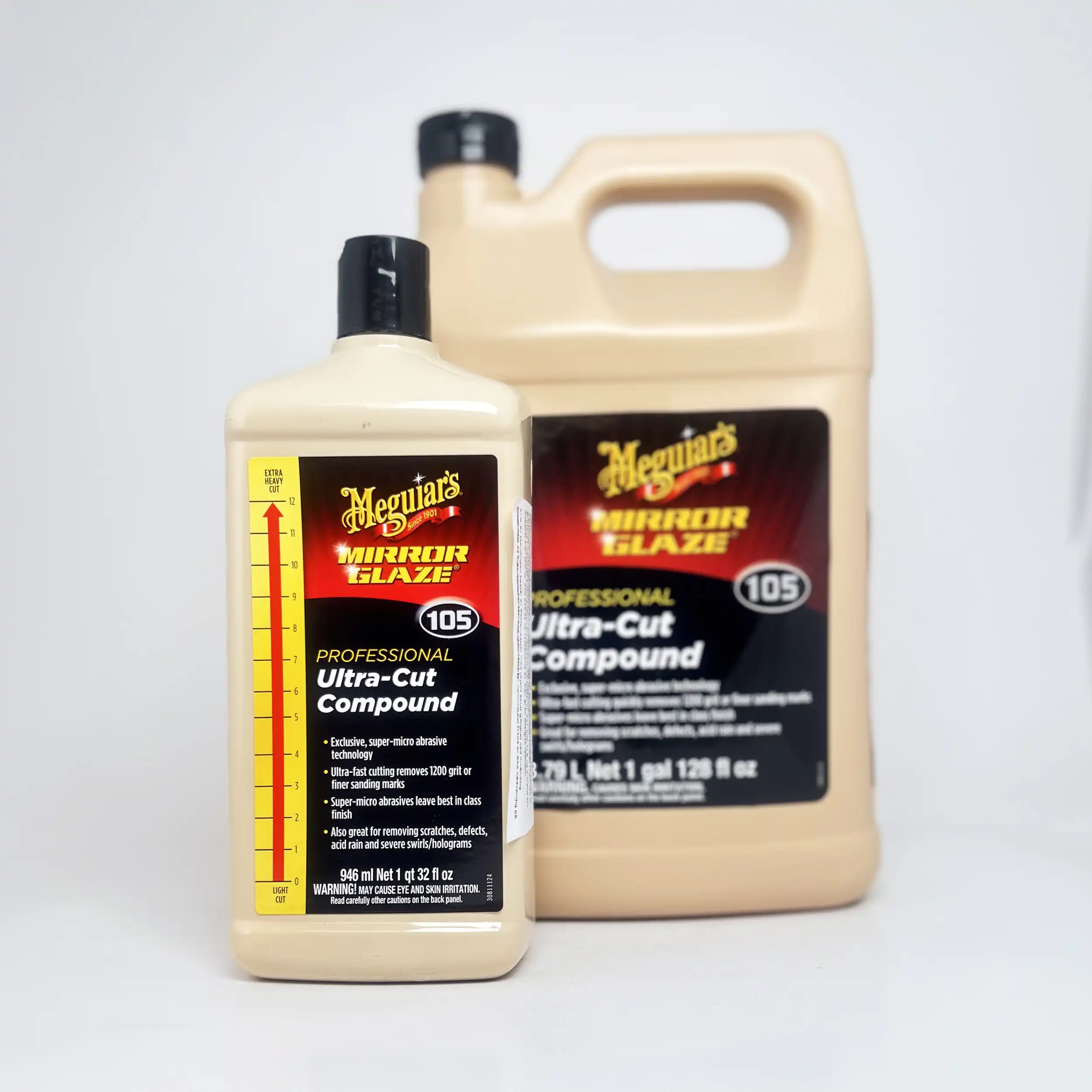 Meguiars 105 Ultra-Cut Compound bruker en eksklusiv, supermikro slipende teknologi som effektivt utjevner flekker og etterlater en nesten voksklar finish.