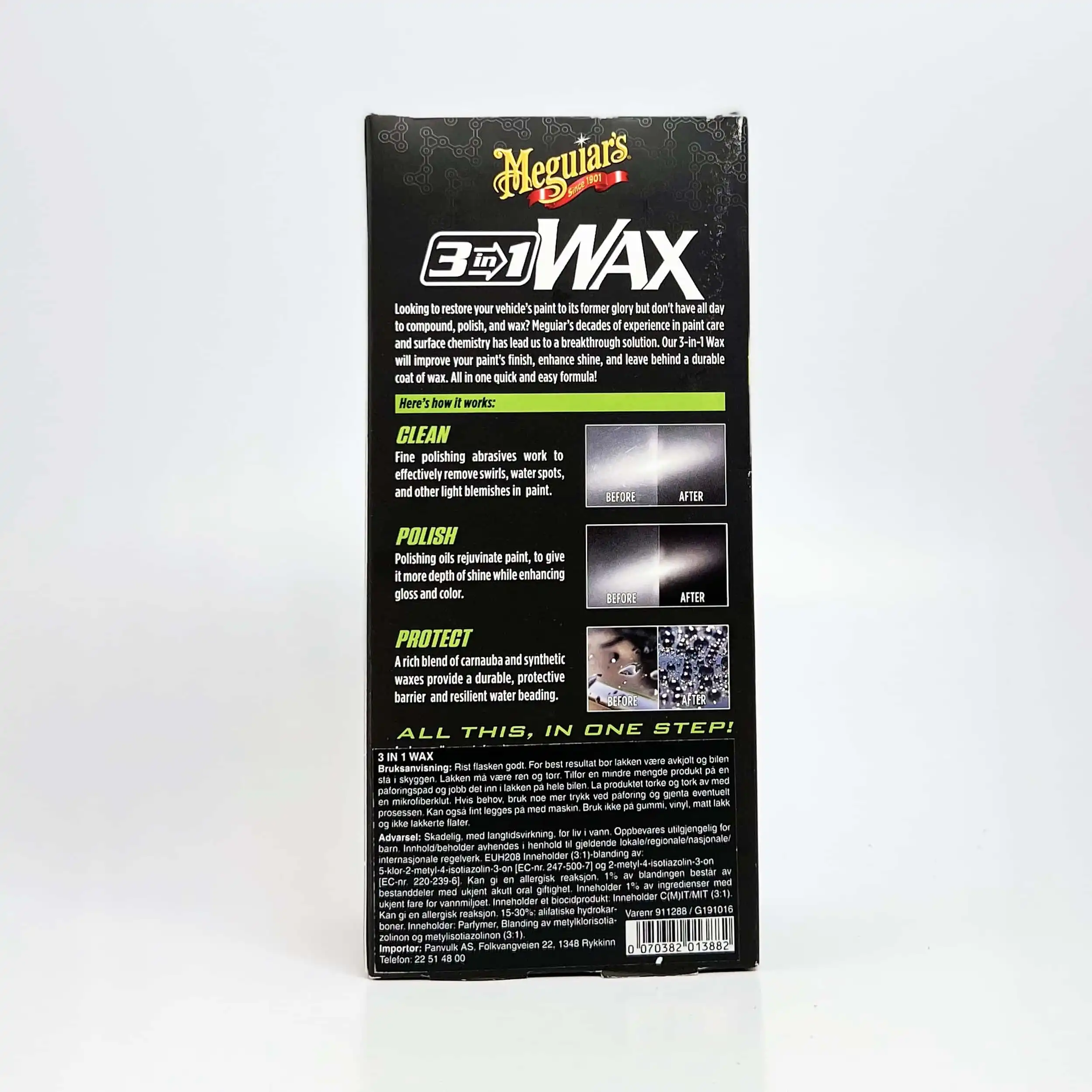 Meguiars 3-in-1 Wax er et alt i et produkt som er særdeles bra til både lakk rens, polish og voksbeskyttelse.