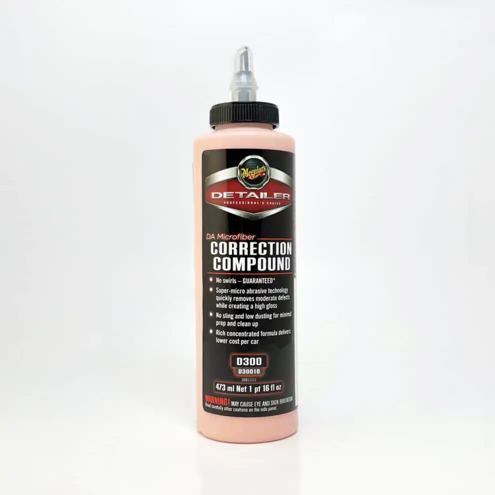Prosessen starter med Meguiars DA Mikrofiber Correction Compound.
