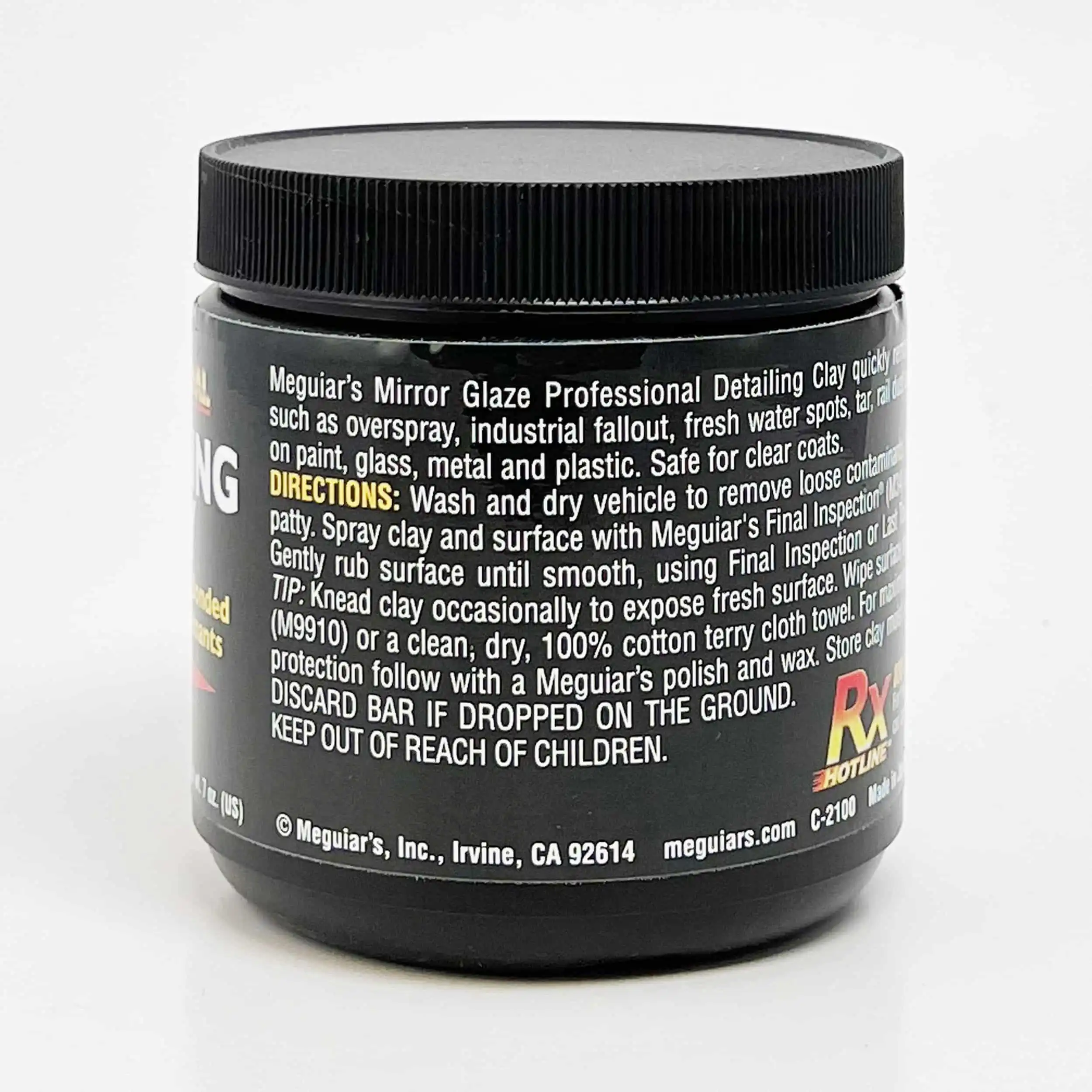Dette er en aggressiv leirestang så raskt takler selv de mest alvorlige nivåene av forurensning. Siden dette er en aggressiv leire, kan det føre til noe mindre skade på lakk overflaten. Vi anbefaler å alltid å bruke en polish etter bruk av Meguiars Detailing Clay Aggressiv. Meguiars Mirror Glaze Professional Detailing Clay fjerner raskt limte overflateforurensninger som lakkstøv , bremsestøv , asfaltflekker, tjære m.m. Det er også helt trygt å bruke på maling, glass, metall og plast.