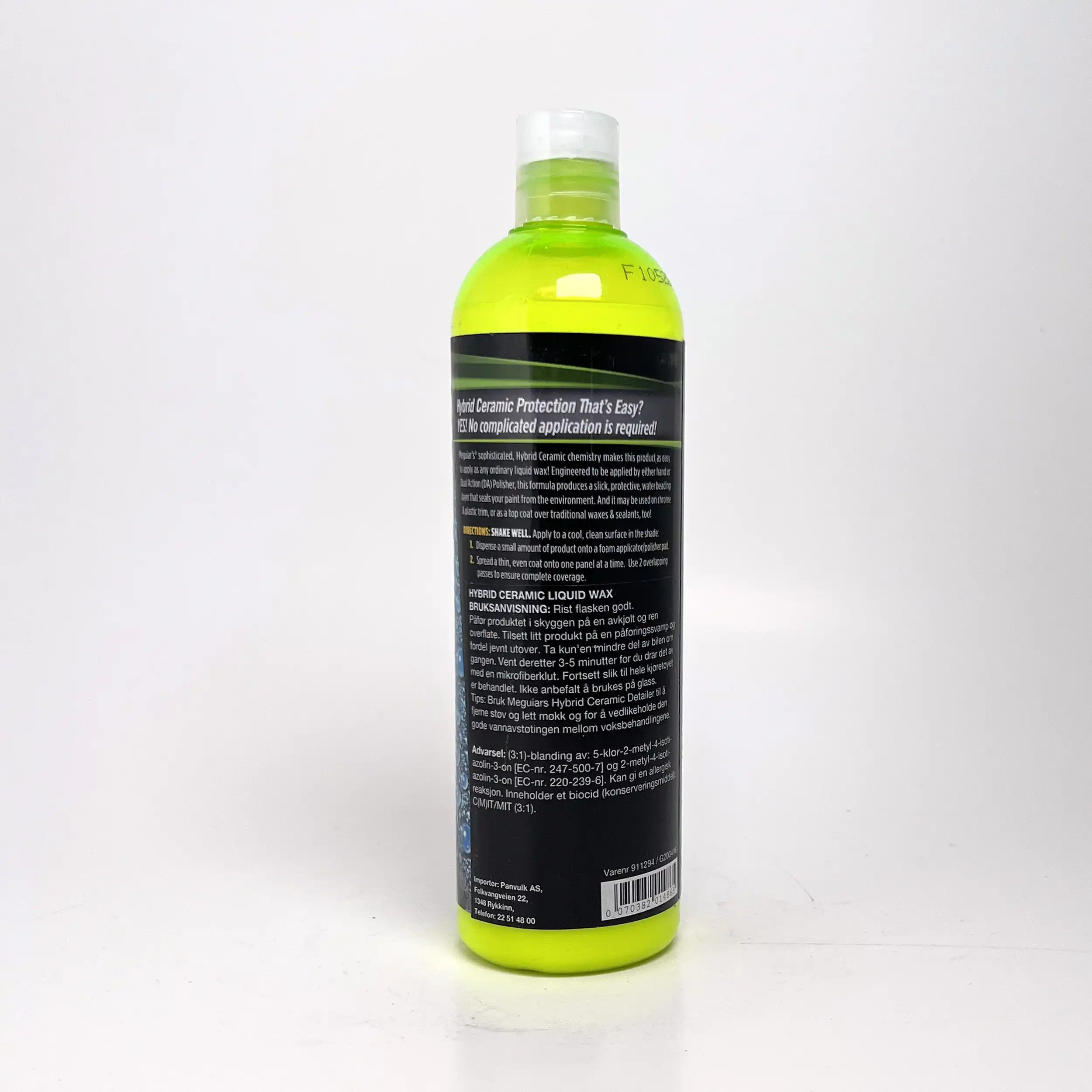 Megiuars Hybrid Ceramic Liquid Wax er en god keramisk lakkforsegling. Lett å påføre, som annen flytende voks. Meget langvarig beskyttelse med fantastisk vannskrekk. Kan også legges på folierte biler, ulakkert utvendig plast og chrome. Meguiars hybrid Liquid ceramic wax er SiO2-baserte additiver, som gjør at du får en fullverdig forsegling. Den varer lenge, gir høy beskyttelse og gjør lakken hydrofobisk. Dette gjør at lakken din ikke bare blir blank, men frastøter seg skitt og smuss veldig effektivt. Den fungerer like fint på krom og plast. Du kan legge den for hånd eller bruke en oscillerende poleringsmaskin med en myk finishing-pute. Produktet kan fint brukes som en selvstendig beskyttelse til bilen din, eller du kan bruke denne som en etterbehandling for å vedlikeholde en eksisterende lakkforsegling.