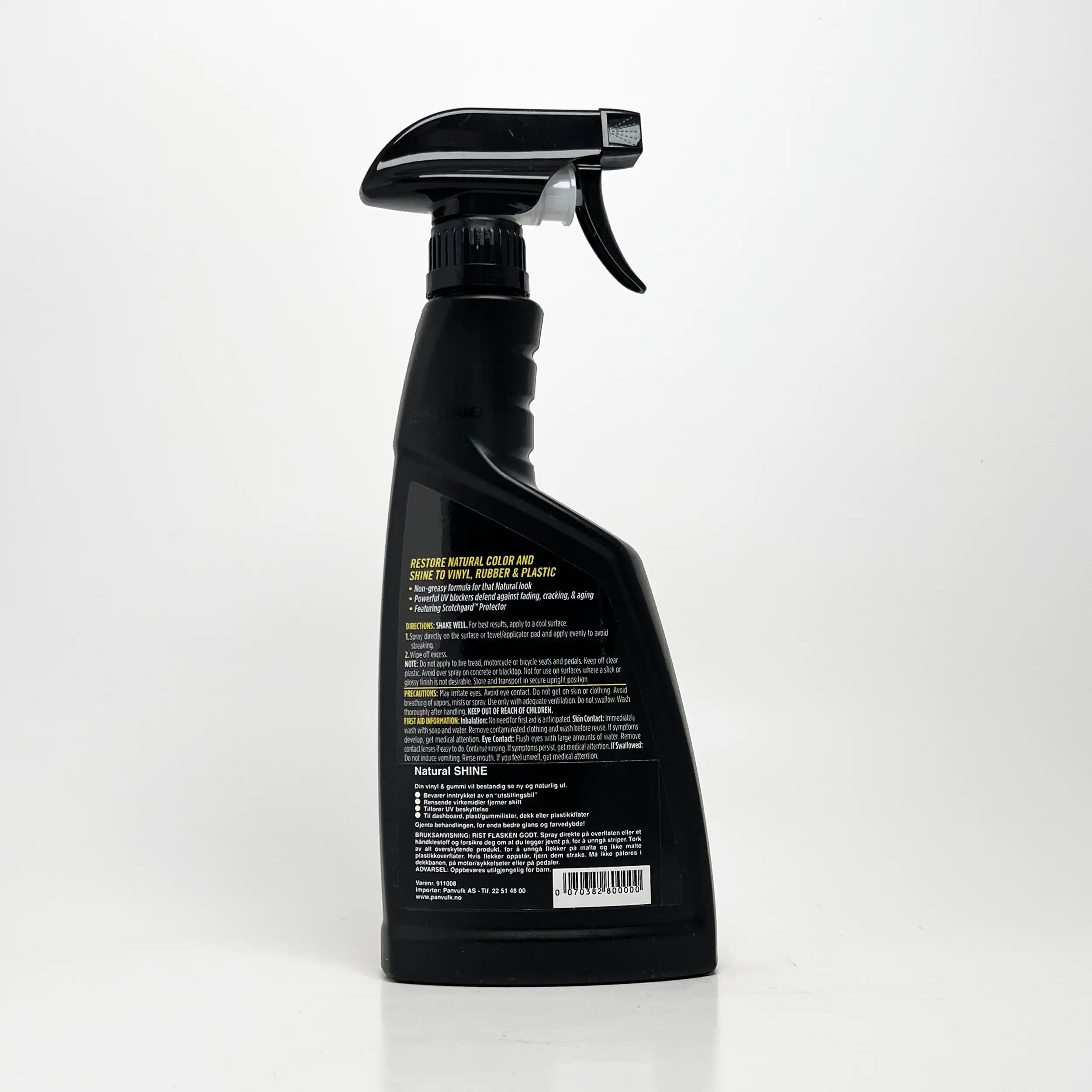 - Gjenoppretter raskt naturlig farge og naturlig glans til overflate av vinyl, gummi og plast