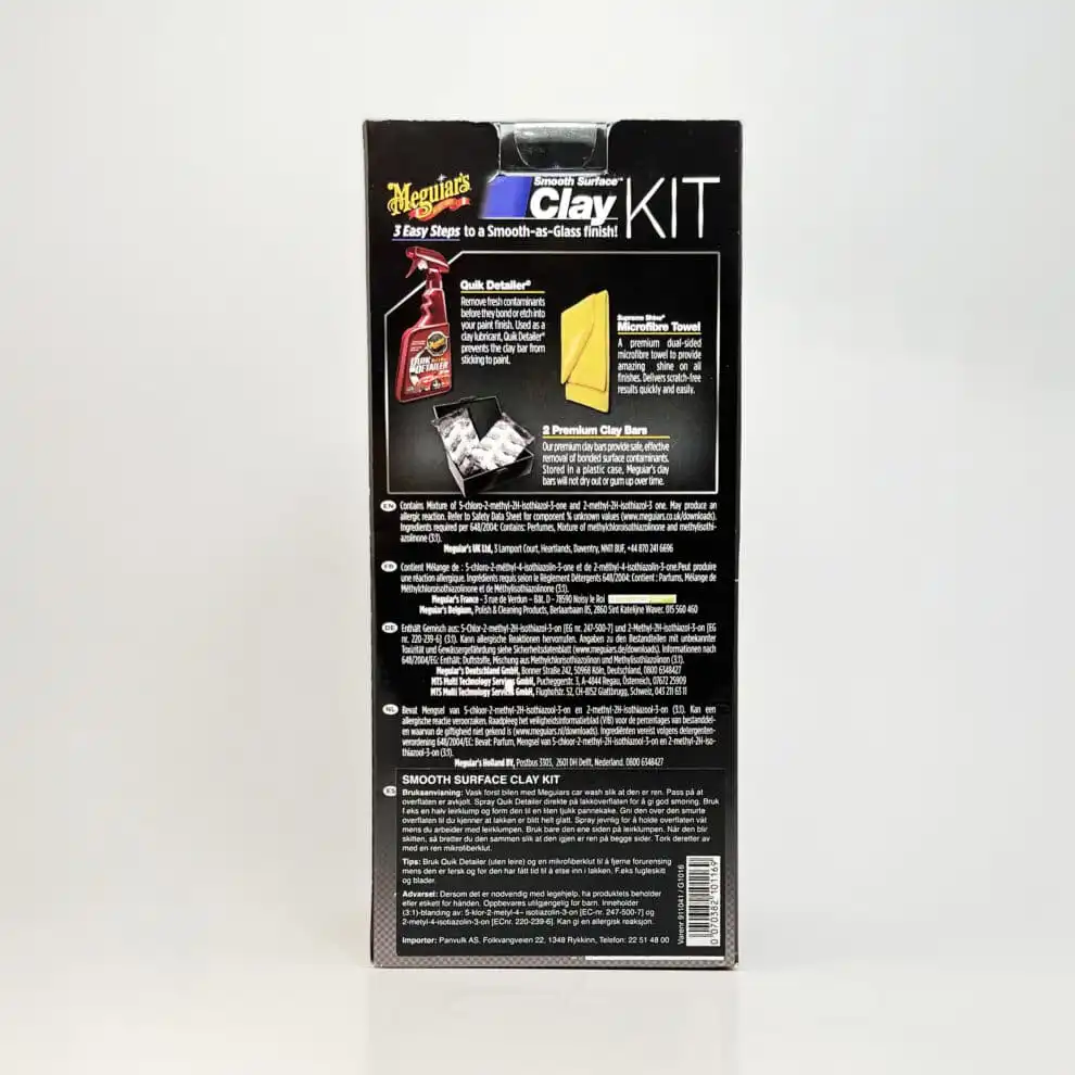 Meguiars ikke-slipende leirestang fjerner trygt, enkelt og øyeblikkelig maling overspray, nedfall, miljøforurensninger og mer. Med Meguiars Smooth Surface Clay Kit, vil du kunne gjøre voksing enklere og varig lenger, og trygt fjerne fastklemte forurensninger.