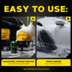 - pH-nøytral: Den er trygg å bruke på alle overflater og vil ikke fjerne eksisterende voks, lakkforsegling eller keramisk coating.