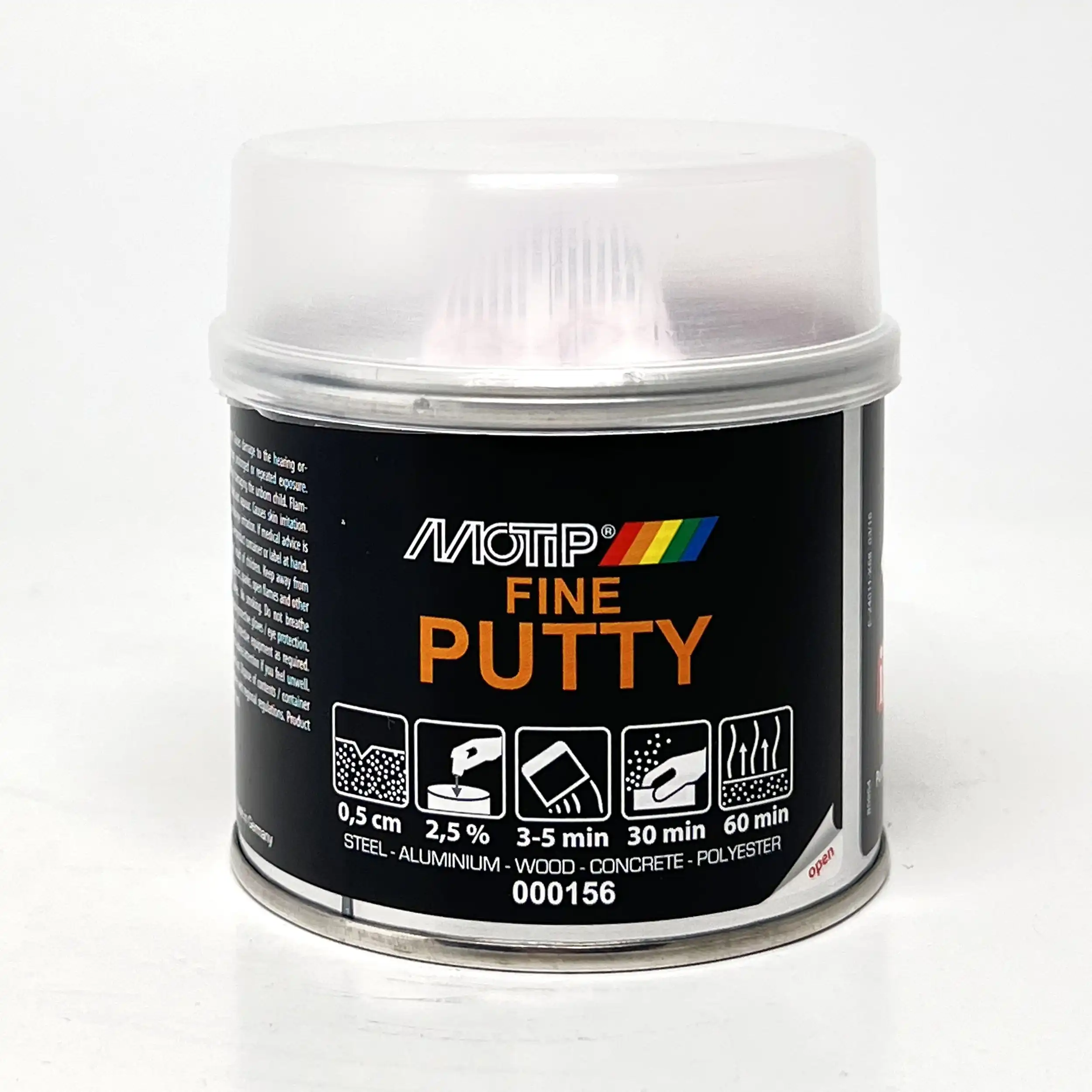 Motip Fin Sparkel brukes til å utjevne de minste ujevnhetene i overflater av stål, aluminium, tre, betong og polyester. Fin sparkelen er lett å slipe, elastisk og kan sprøytes på nytt med alle lakksystemer. Den har også en veldig fin struktur og utmerket vedheft og er motstandsdyktig mot kjemikalier og vær. Motip Fin Sparkel 250g kan påføres i lag med tykkelse opptil 0,5 cm.