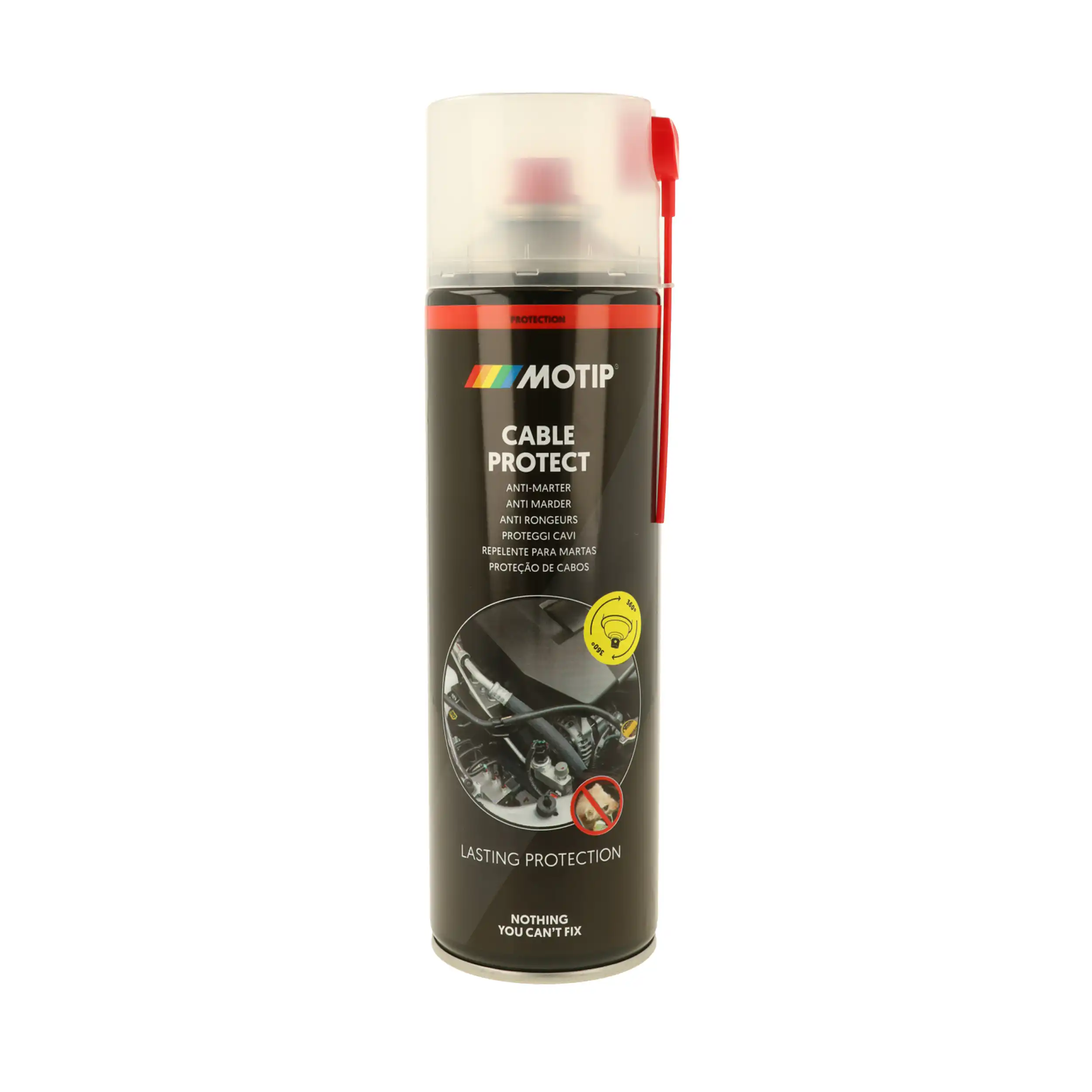Motip Kabelbeskyttelse Anti-musespray 500 ml. er et produkt, som brukes først og fremst til å forhindre skader på kabler og ledninger forårsaket av mus, mår og andre små gnagere/pattedyr.