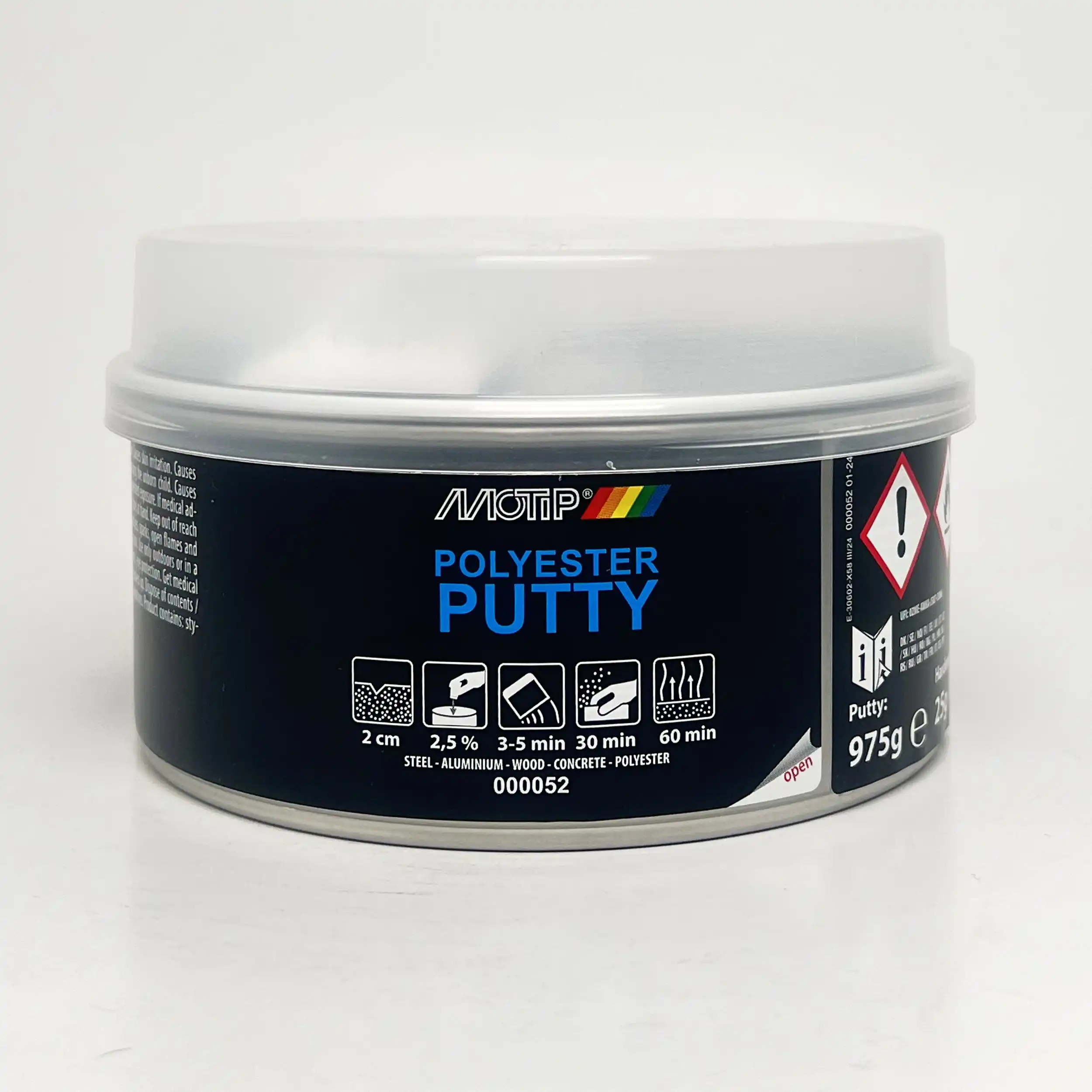 Motip Polyester Sparkel utjevn ujevnheter som hull i overflater av stål, aluminium, tre, betong og polyester på bilen din med MOTIP 2-komponent polyesterkitt. Polyesterkitt er elastisk og veldig lett å slipe. Polyesterkitt er re-spraybar med alle lakksystemer og motstandsdyktig mot kjemikalier og vær. Motip Polyester Sparkel kan påføres lagvis med en tykkelse på opptil 2 cm.