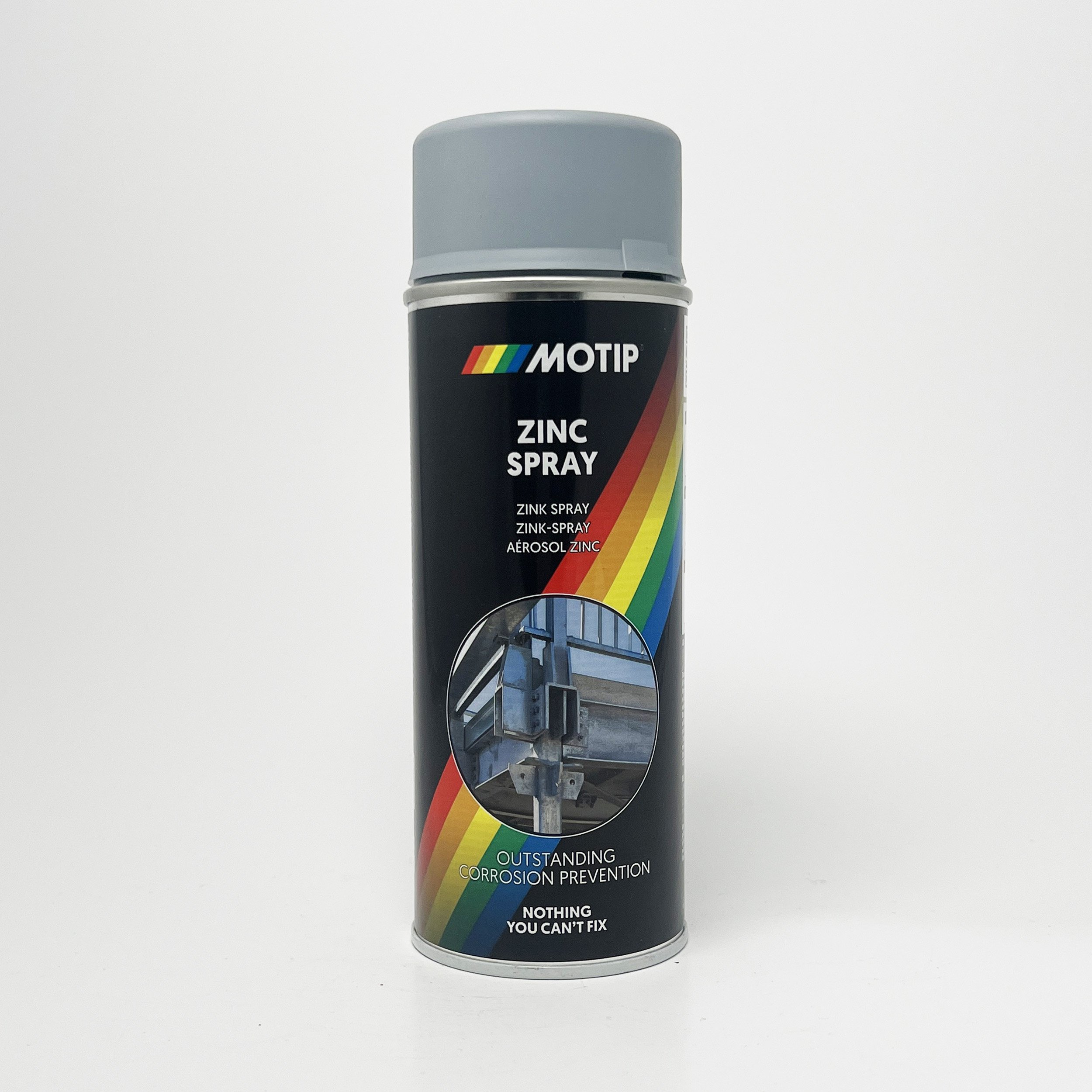 Motip Sink Spray 400ml er en hurtigtørkende sink basert grunning av høy kvalitet, beregnet for behandling av galvanisert og ubehandlet stål. Den gir utmerket beskyttelse mot korrosjon, er punkt sveisbar, og er motstandsdyktig mot bensin, kjemikalier og værforhold.
