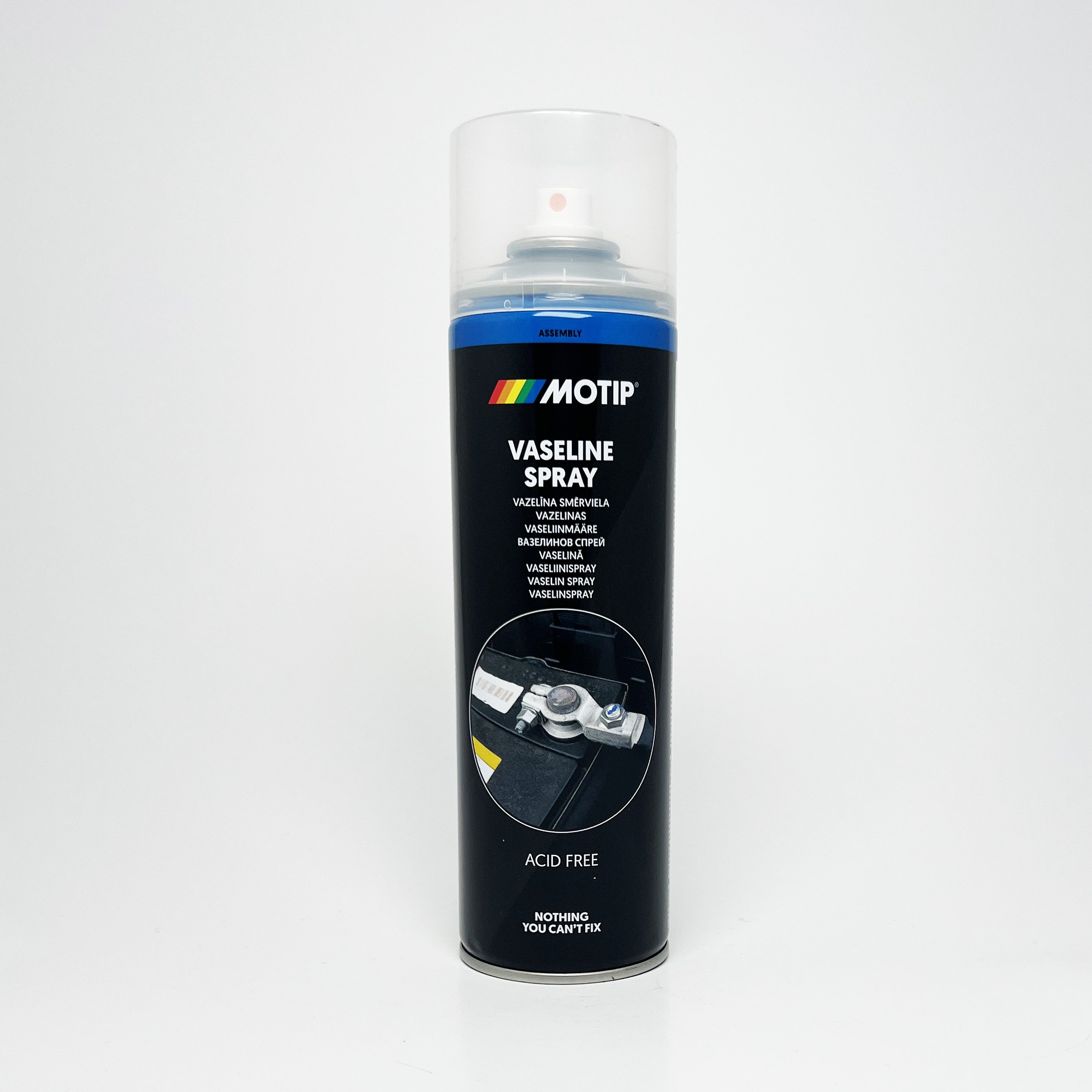 Motip Vaselinolje spray 500 ml er et smøre- og konserveringsmiddel. Den er vannavstøtende, pH-nøytral, motstandsdyktig mot vær og vind, samt svake syrer og baser. Den har utmerket korrosjonsbeskyttelse og beskytter mot slitasje.