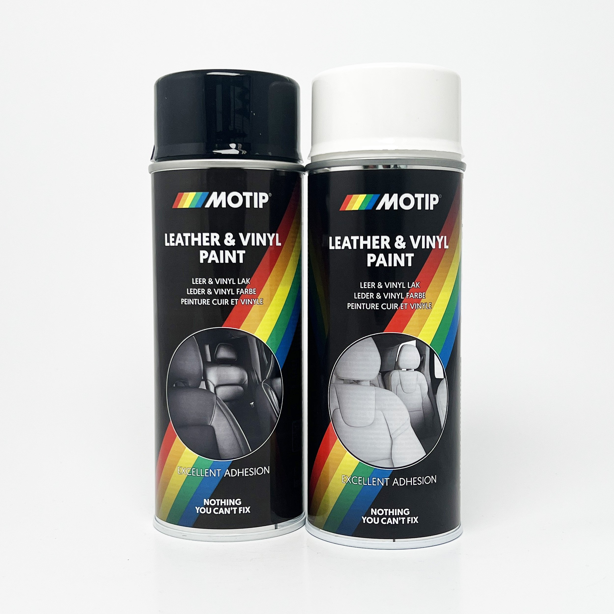 Motip Vinyl Spray 400ml er en høykvalitets, elastisk spraymaling utviklet for å reparere, friske opp og dekorere overflater laget av vinyl, lær og kunstlær (som f.eks. bilseter, møbler og andre interiørdetaljer).