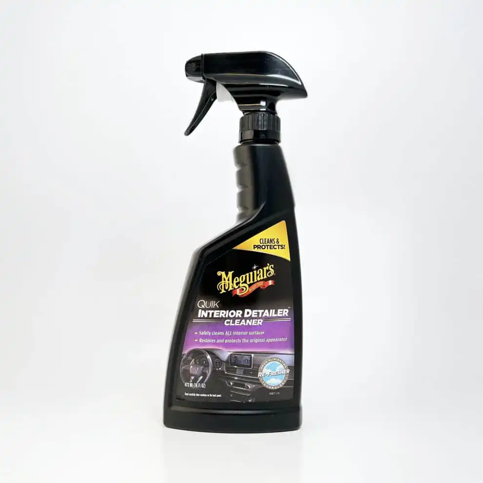 Meguiars quik interior detailer en enkel og rask til rens og beskyttelse av alle interiøroverflater. Bevarer utseendet til både plastikk, vinyl, lær, gummi, metall og AV-utstyr. Meguiars quick interør detailer er ikke smørende eller klissete, men etterlater et naturlig utseende og frisk duft etter bruk.
