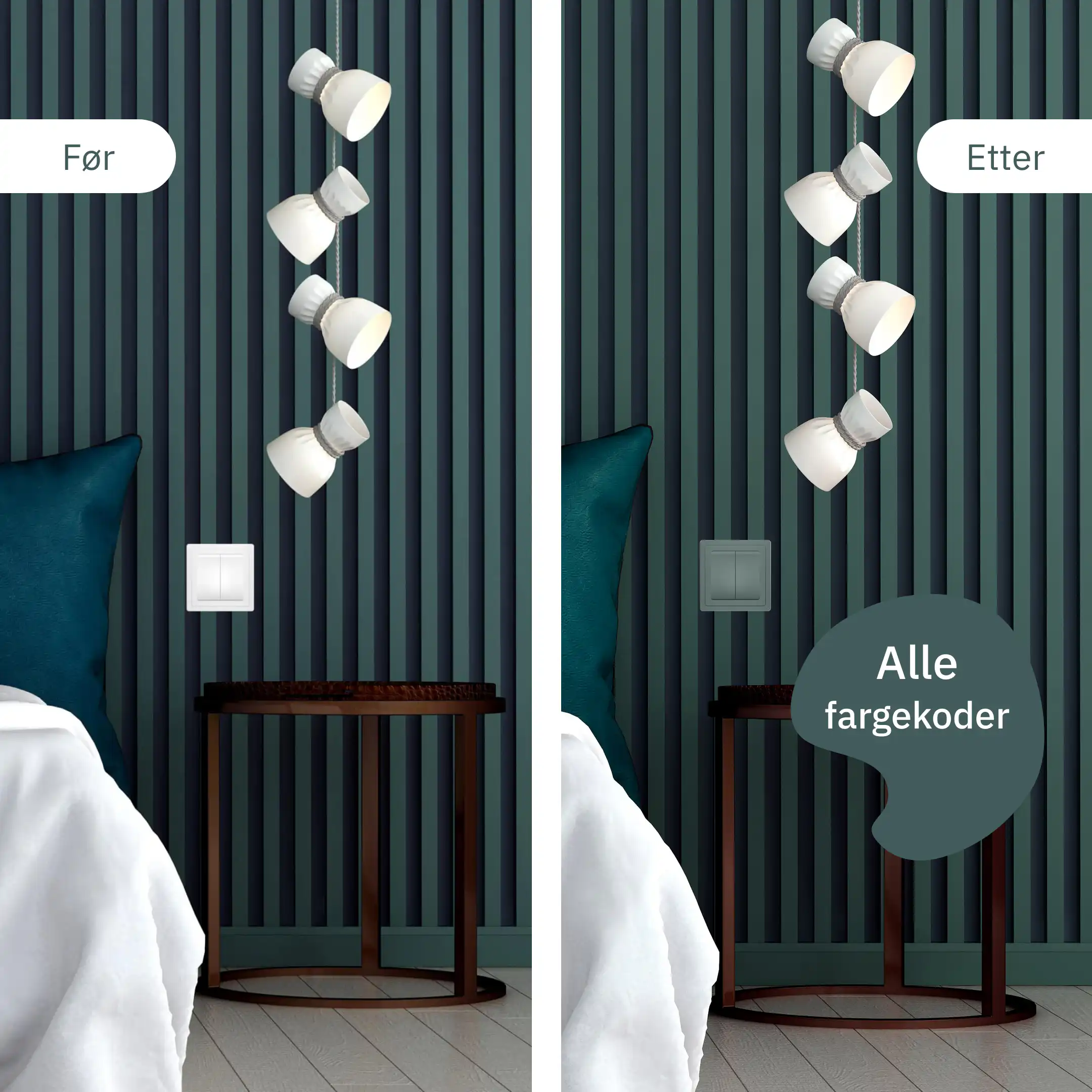 Vi lager spraymaling i den fargen du du vil ha, NCS, RAL eller andre malingskoder. Så om du ønsker en lampe, stikkontakt eller lysbryter i samme farge som stueveggen din, kan vi lage akkurat den fargen på sprayboks. Finn fargekoden din og bestill i dag!