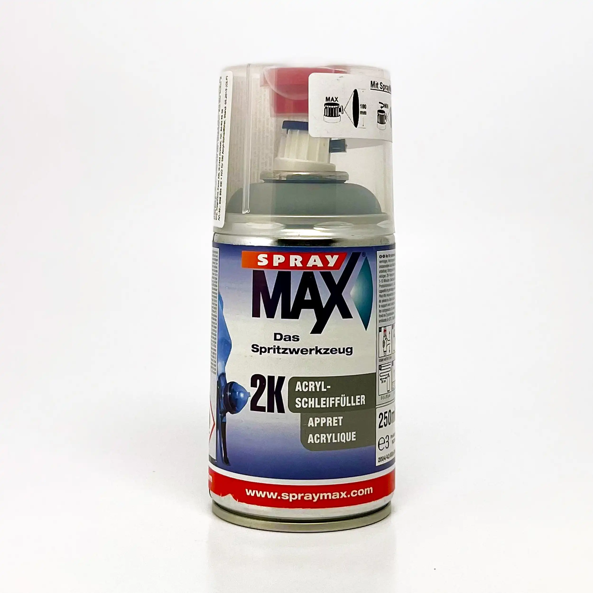 Spraymax 2K Akryl Filler er en profesjonell og meget hurtigtørkende sparkel. Har en utmerket fyllingskapasitet, enestående flyt og meget effektiv isolering for gamle lakk jobber. Kan brukes til mellomflater. Forgrunn store gjennomslipte flekker, for eksempel med sparkelgrunning.