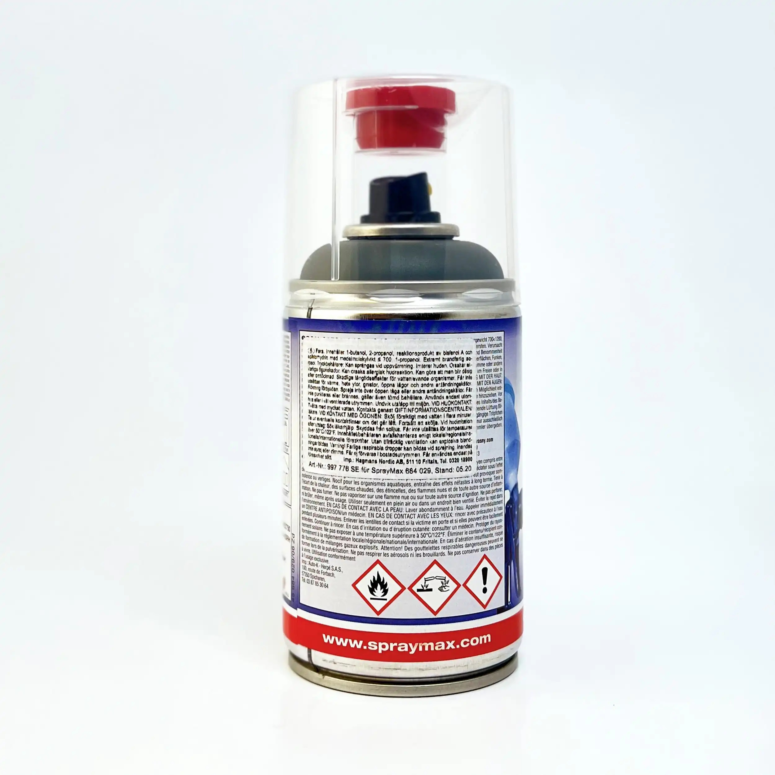 SprayMax 2-komponentteknologi gjør at det er maling og herder i samme sprayboks. Herder i en egen del som frigjøres ved å trykke inn knappen i bunnen av boksen.