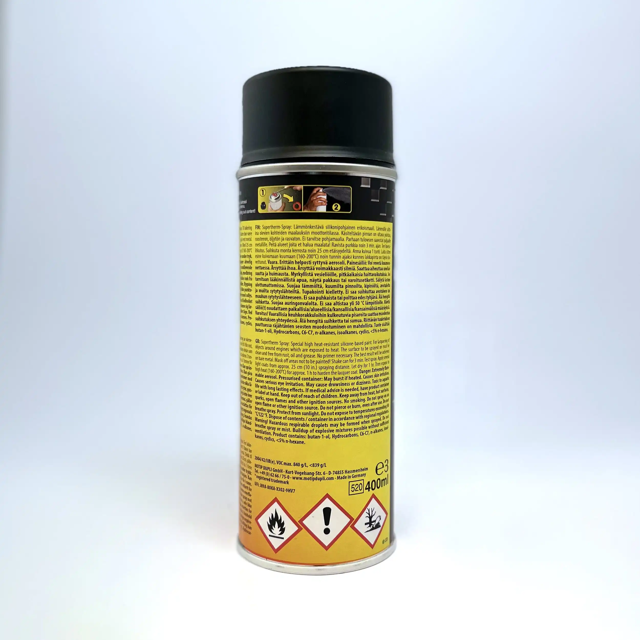 Dupli-Color Supertherm spraylakk for høye temperaturer og er egnet til grenrør, kaminer, griller m.m. 800°C.